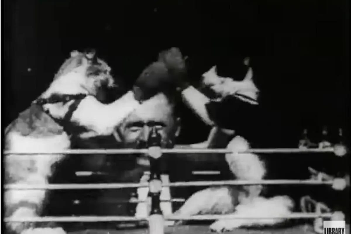 In fact, the first known cat video was filmed in Thomas Edison's motion picture production studio. Yes, that Thomas Edison, the lightbulb guy. Turns out that he not only assisted us in not having to carry around oil lanterns, but he also gave us cat videos. Who knew? But the first cat video isn't quite like the ones we're used to seeing today. Edison didn't just film cats doing typical cat stuff; he knew the silent film would need a hook–a left hook to be exact.