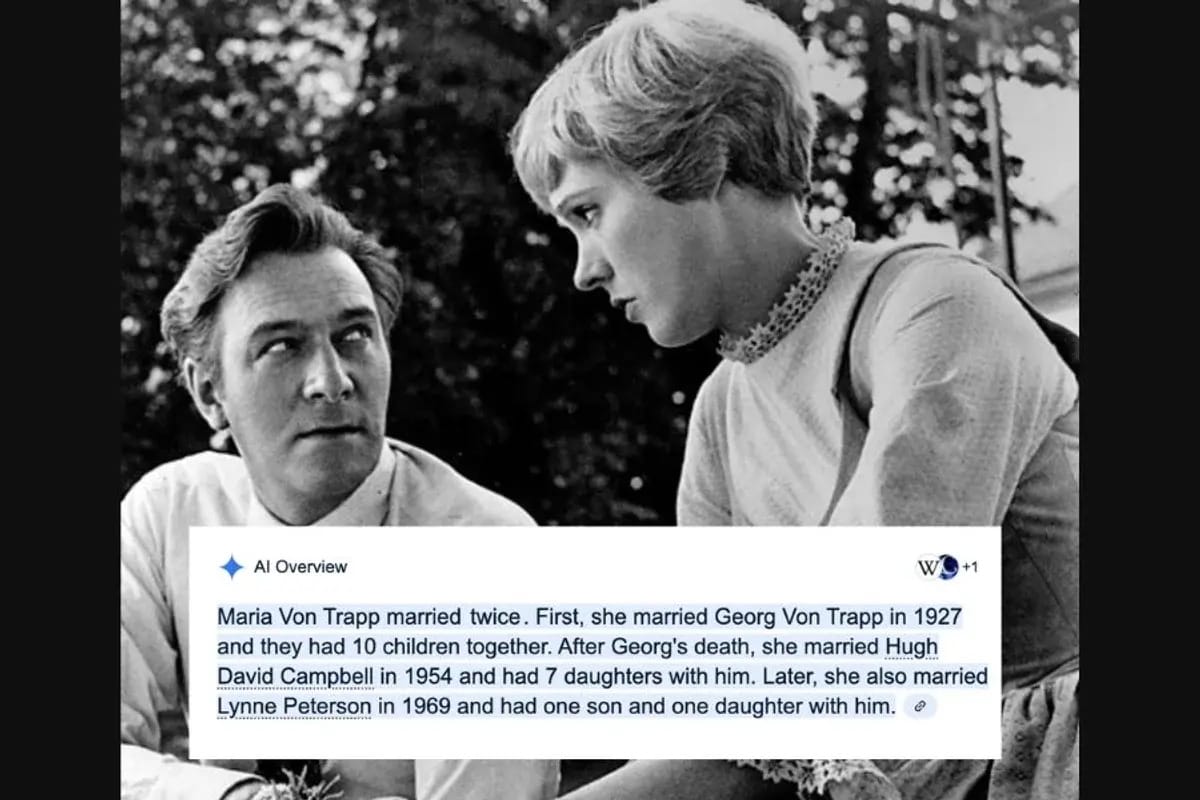 I recently wrote an article about the real-life love story between Maria and Georg Von Trapp, and as part of my research, I found out Georg died 20 years after they married. I hadn't seen anything about Maria remarrying, so I Googled whether she had. Here's what the AI Overview said when I searched last week: