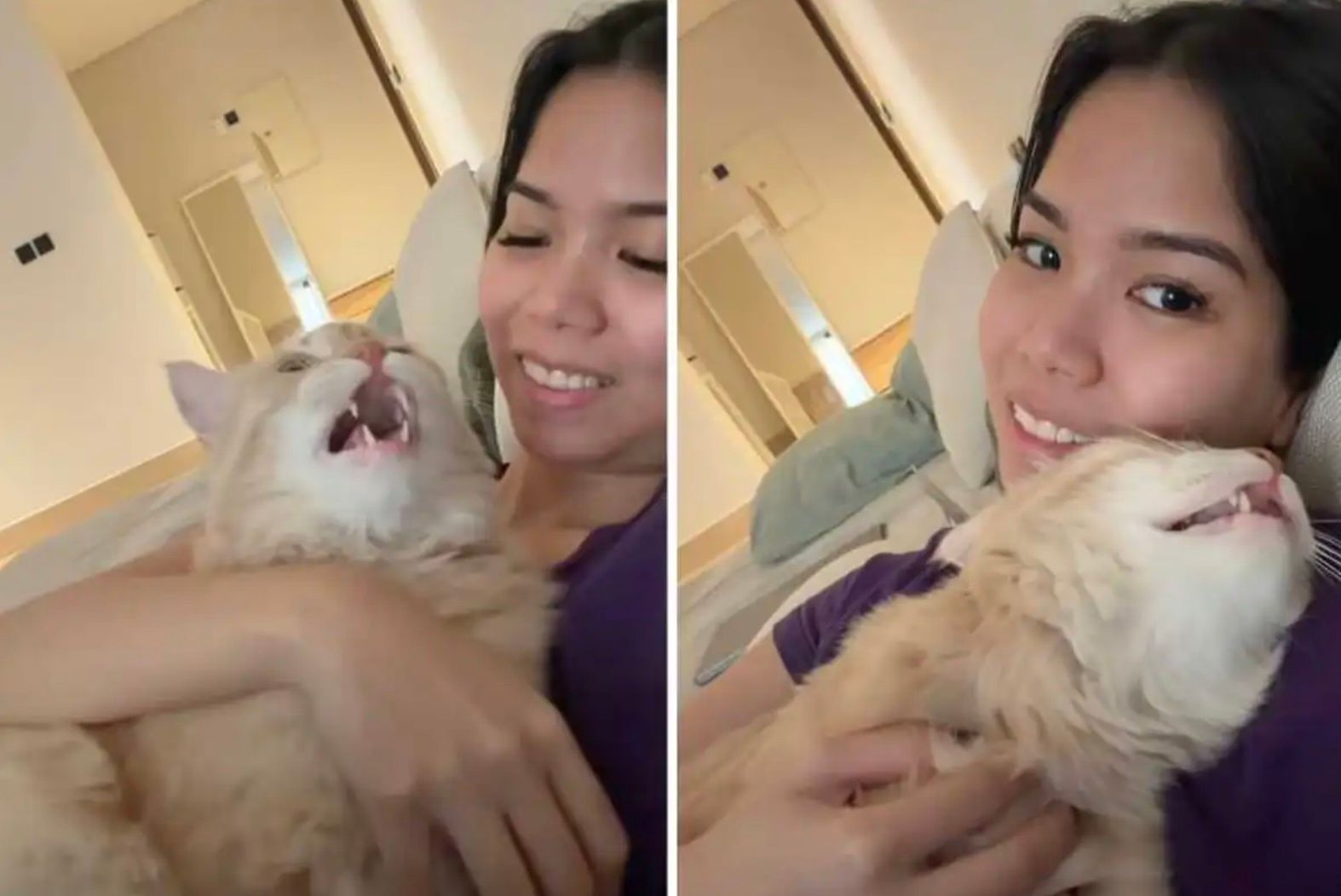 Leo's owner, Rosh, has shared multiple videos of him joining her for a song while they're cuddled up together, and it's something you really just have to see.